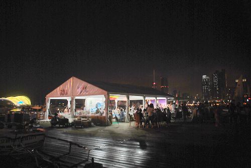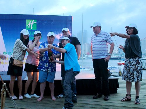 上周六晚上的奧帆中心,岸上的游人被海邊木質(zhì)平臺上的景象吸引。平臺上嘉賓頻頻舉杯,歡聲不斷,原來這是城陽景園假日酒店在搞