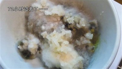 沒有加蓋的一碗米飯,在空調下吹了72小時后,已經長毛發黑,出現大片霉斑。