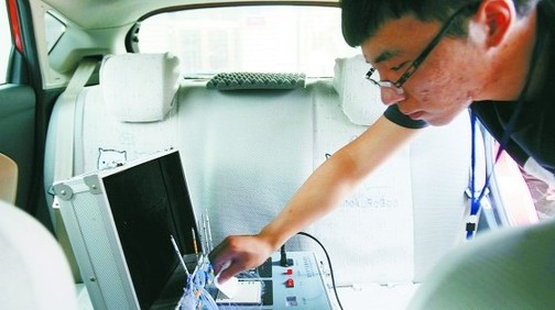????網上一則汽車儀表盤、沙發經過暴曬后會釋放致癌物苯的帖子,把炎炎夏日的不少市民都嚇出了一身冷汗。8日,青島太美偉業環保科技有限公司工作人員和記者一起通過專業檢測設備,對一輛已經使用3年、在陽光下暴曬了兩個多小時的汽車進行6種有害氣體檢測,結果顯示,苯雖然沒有,但甲醛超標2倍。