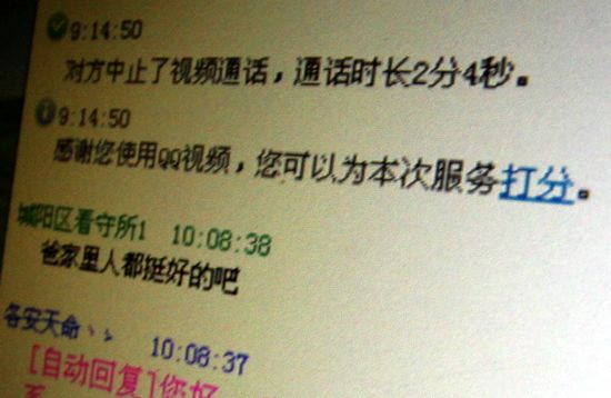 在押人員藍某通過qq視頻與家中的老父親得以相見