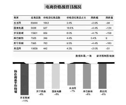 昨日早9點,號稱“史上最慘烈”的電商“價格戰”打響。根據一淘提供的第三方“戰后信息”,昨日6大電商的大家電商品11.7萬余件中,僅有5000多件商品價格有所下降,占比約4.2%。而調查顯示,多數網友對價格戰并不認可。