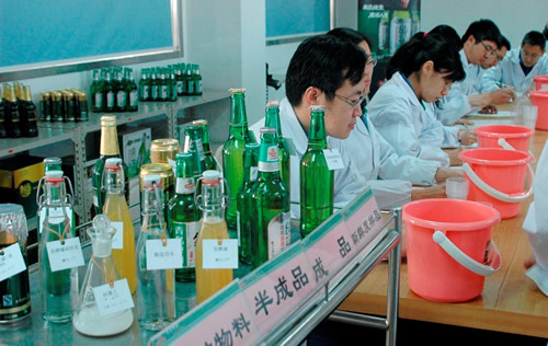 ????消費者入口的啤酒 必是青啤品酒師事先嘗試過千百次的 ???? ????啤酒節來了,到啤酒城“哈”啤酒成了最流行的話題。雖然我們經常喝啤酒,也經常“不醉不歸”,但是,如何喝啤酒,如何品啤酒,卻很少有市民知曉。難道喝啤酒就是大口“哈”嗎? ????為了讓市民能在啤酒節上盡興,能更加享受600多種啤酒,記者采訪到了青島啤酒廠總釀酒師皮向榮。她表示,品啤酒要分“觀、聞、品”三個步驟,“要品啤酒的話,最能享受品酒的量為一口喝15—20毫升。” ????喝酒更懂酒 ????青啤釀酒師教您品酒 ????采訪中,很多市民表示,在飯店喝酒的時候,在大家激情暢飲的時候,大家都認為,喝啤酒就要大口喝,一口喝一杯,這樣才能更好的品味啤酒。另外,倒酒的時候,大家都希望杯子里面的沫越少越好,倒得滿滿的。可是,皮向榮表示,實際上真正要來欣賞一杯的啤酒的時候,泡沫距離杯口的距離應該是3-5厘米。對于具體如何品酒,皮向榮說,有觀、聞、品三步。 ????觀: ????一看色澤二看泡沫 ????一杯酒拿到手我們首先要看一下它的色澤、它的澄清度,是否清亮。我們通常喝到的啤酒是金色光澤,在光線下應該是晶瑩剔透的。因為是經過過濾的,已經把其中的酵母過濾掉了。所以說如果啤酒采用精選的原料、優良的釀造工藝,那么它的色澤應該是透亮的,在光線下你可以看到它幾乎在發光。再一個要看泡沫,泡沫要潔白、細膩。另外,泡沫要持久掛杯,就是這個沫消下去之后,會有一些沫掛在杯壁上。因為泡沫是啤酒非常重要的一個特質,潔白、細膩、持久掛杯的泡沫,可以讓消費者更好地享受暢飲帶來的快樂。 ????聞: ????先短呼吸,再長呼吸 ????聞主要是聞酒的風味。倒半杯酒,輕輕地搖晃一下,這樣啤酒揮發性的風味物質就可以揮發到空間里來了,這時候你拿到鼻前,先是兩下短呼吸,輕輕的吸一下,就可以體會到這里面的氣味。下一步,再搖晃一下手中的杯子,這一次放到鼻前要做一個長呼吸,再來感受一下。這時候有沒有酒花香?有沒有麥香?有沒有異雜味?或者一些不愉快的氣味。好啤酒聞的時候麥香和酒花香撲鼻而來,清香淡雅,濃郁不散。 ????品: ????一口喝15-20毫升最佳 ????品酒當然要喝下去,那么我們一般喝多少最佳呢?皮向榮說,要品酒的話,應該是喝15-20毫升。保證酒液可以鋪滿你的舌面,喝進去之后舌頭稍微滾動一下,讓整個口腔都能感受到啤酒。這時候你會感到啤酒典型的特點,爽口性和剎口力。據介紹,現在啤酒中的風味特點能夠檢測得到的已經有一百多種,但是品的過程并不是把酒中的一百多種物質品嘗出來,重點是這些物質在酒中是否能夠很協調地融合在一起的。“常見的風味物質如麥芽香氣、酒花香氣等都屬于能聞到的風味,而爽口性和剎口力是我們能品嘗到的。” ????青啤有啥不同? ????更柔和、更爽口,不信您品品 ????作為百年品牌,青島啤酒已經成為全球通行的中國名片,那么青島啤酒和其他的啤酒有什么不同呢? ????對此,皮向榮說,青島啤酒的特色從氣味來說,有一種優雅的酒花香,還有一個濃郁適中的麥芽香,再一個泡沫潔白、細膩、持久掛杯。另外從口感上來說,大家應該感受到,它雖然是屬于淡爽型,因為濃度不同,有一些可能是更醇厚一點,有一些更淡爽一點,但總之青島啤酒特色是柔和、協調、爽口。再一個是協調,就是說有一些物質并不是說越多越好,或越少越好,關鍵在于這些物質在一起能有一個平衡點,青島啤酒所追求的是醇脂平衡、柔和協調性和爽口性,讓消費者在喝青島啤酒時產生愉悅的心情。 ????青島啤酒的科研中心是國家級重點實驗室,在行業中具有領先的研發能力。此外我們認為好品質不光是生產、檢驗出來的,更是體驗出來,消費者所入口的東西,必是青啤品酒師事先嘗試過千百次的。從而保證青島啤酒始終為消費者提供大家喜好的啤酒,真正為生活創造快樂。 |
