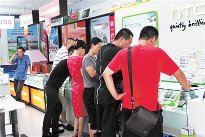 “聽說今天開始,蘇寧用網上的價賣家電,我就帶孩子過來買電腦了?!弊蛉障挛?時許,記者在香港中路蘇寧電器門店內看到,雖然是正常工作日,但店內的客流量明顯偏多。市民王先生說,他和孩子選購的索尼電腦店內標價比網上高出三百多塊錢,通過詢價之后,店方最終以網購價格賣給了他。因為有優惠,他又順便給孩子買了一部諾基亞手機?!案鶕覀兪袌霾康某醪綔y算,今天的客流量和單日銷售量都出現了50%以上的同比增幅。”蘇寧電器青島公司相關負責人董先生向記者表示,目前,在青島各蘇寧電器門店內,都設置了專門的詢價機,供顧客和促銷員免費使用,“我們還安排了專門的服務人員,幫助顧客上網查詢相關產品價格。而對于促銷員,我們的要求是,每兩個小時就要來查一下網上價格,然后根據網上價格實時調整店內售價。”