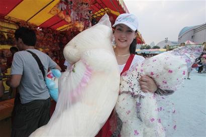 記者在采訪中了解到,不少游客前來玩小游戲都不差錢,掏個一兩百不在話下。在投籃球處,一對年輕伴侶先后玩了5次,共用掉了20個游戲幣,花了100元錢?,F場的工作人員告訴記者,前天,一幫本地市民前來玩奇妙彩虹游戲,花了200元錢,最后中了一個大獎,抱走一個維尼熊毛絨玩具,還中了兩個小獎。