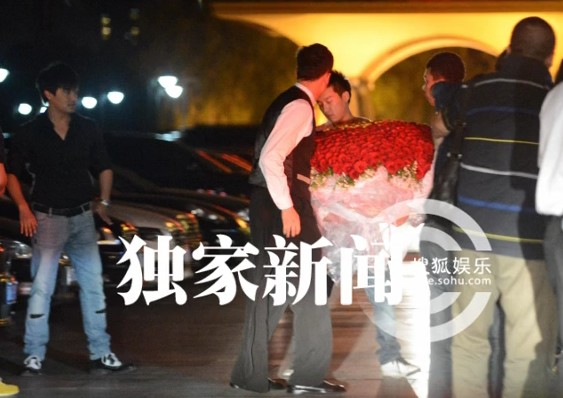 陳思成送999朵玫瑰疑求婚 佟麗婭當街醉酒(組圖)