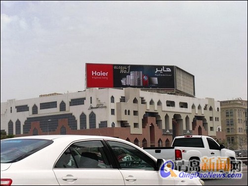 ????這張照片中海爾廣告牌立于一座伊斯蘭風格的建筑上,遠遠望去這座建筑與海爾logo,以及包括冰箱、洗衣機在內的海爾全線產品照片相得益彰。照片上用阿拉伯語與英語共同書寫的海爾“全球第一”與奢華的迪拜城融為一體,成為這條主干街道上一道炫麗的風景。所謂一葉知秋,這樣的景觀也從側面反映了海爾在迪拜市場的成功滲入。