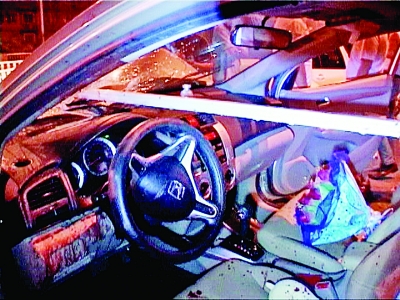 一根鋼筋直接插入車內駕駛座。