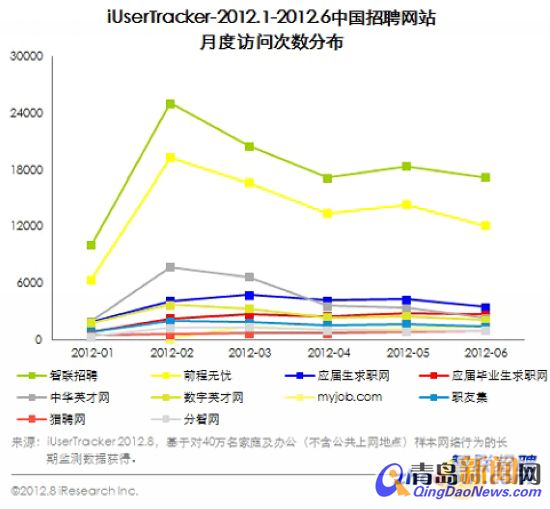 ??? 智聯(lián)招聘流量具有一定優(yōu)勢(shì),領(lǐng)先其他招聘網(wǎng)站數(shù)據(jù)顯示,2012年上半年,智聯(lián)招聘的月度覆蓋人數(shù)和月度總訪問次數(shù)在招聘行業(yè)里一直保持領(lǐng)先優(yōu)勢(shì),增長(zhǎng)迅速;前程無憂流量基本持平;中華英才網(wǎng)則下滑嚴(yán)重,流量已經(jīng)被應(yīng)屆生求職網(wǎng)、數(shù)字英才網(wǎng)等網(wǎng)站超越。