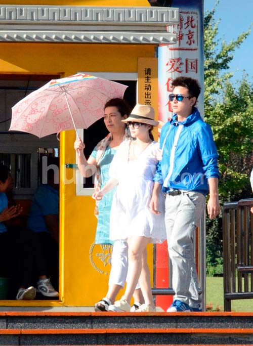 李小璐挺大肚逛公園似女皇 婆婆老公輪番伺候(圖)