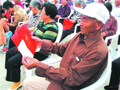 ????去年國慶節前,家住城陽區夏莊街道王家曹村的黃培芳老人收到了子女送來的禮物——一份養老保險繳費單。15年的養老保險費一次性繳清后,黃培芳在年底滿60周歲時就可領到養老金。黃培芳說,“現在我們村里子女孝順老人,時興的是送養老保險了。這樣,兒女們減輕了負擔,老人們也沒有了后顧之憂。”近日,記者又來到了膠南市尹家村見到了尹衍俊老人,“今年提標了,7月份開始每月漲了55塊,我現在一月能開473塊錢了!”老人激動地告訴記者。