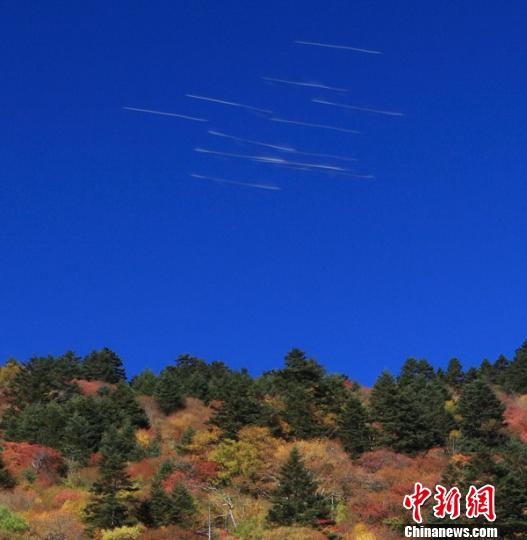 中新網神農架10月1日電 10月1日,一位攝影愛好者在神農架拍攝美麗秋色時,意外拍到一組不明飛行物的軌跡,當地氣象專家尚未能作出確切解釋。