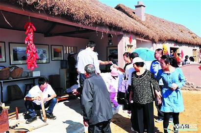 ????前天,膠南靈山灣海邊,新建起一排排海草房,屋里屋外,曬魚干、織漁網(wǎng)、蒸面魚等等原汁原味的漁家生活在這里重現(xiàn)。這是膠南新建的靈山漁村,一時間,這里游人如織,前天和昨天有數(shù)萬游客光臨這里,口味獨特的漁家風情。