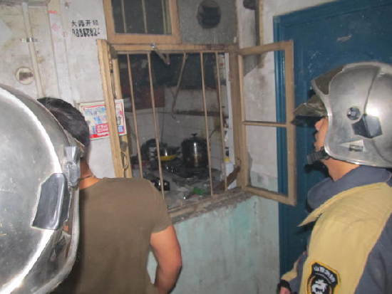 ????9日上午,消防隊員到達現場時,聞到濃厚的天然氣味道,住戶房門反鎖,電話也無人接聽,在這種緊急的情況下。中隊指揮員聯合