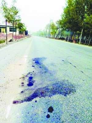 案發現場距離保阜高速曲陽靈山出口大概3公里,路邊一條半米多寬,兩米多長的血跡依然非常清晰。