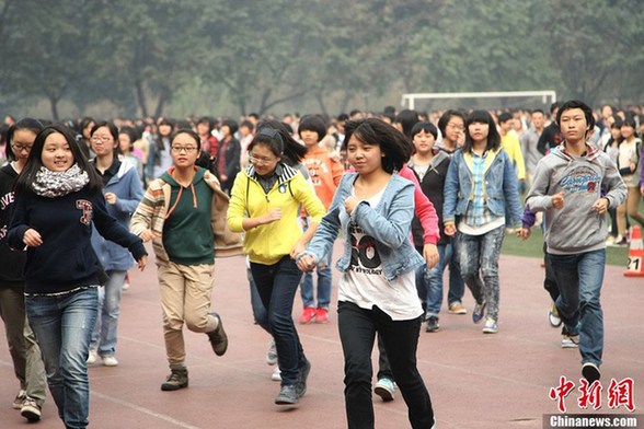 11月2日,重慶南開中學課間操上,學生們在體育老師的帶領下,在操場上興奮的跳著《最炫民族風》。前不久,全校課間操學生齊跳《江南style》的南開中學又玩起了新花樣,課間操曲子換成了《最炫民族風》。
