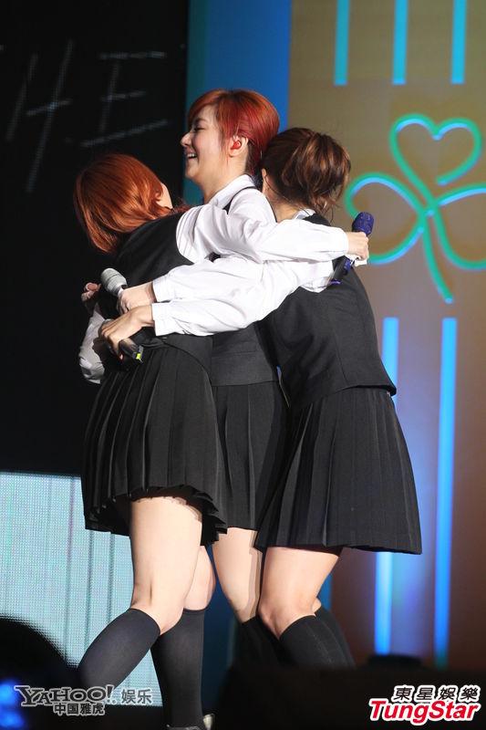 SHE穿學生制服扎馬尾賣萌 臺上相擁成淚人(組圖)