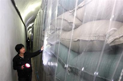 “常年恒溫也為這個(gè)防空洞帶來(lái)了成為糧倉(cāng)的天然條件,這也是地下糧庫(kù)獨(dú)有的綠色儲(chǔ)糧方法。”胡法民自豪地告訴記者。糧倉(cāng)的溫度若超過(guò)18℃就容易滋生害蟲(chóng),15℃的低溫正好適宜儲(chǔ)存糧食。