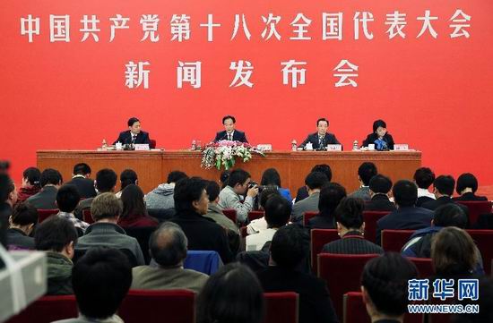 ????[蔡名照]:去年10月,黨的十七屆六中全會作出《關(guān)于召開黨的第十八次全國代表大會的決議》之后,在黨中央領(lǐng)導下,開始了黨的十八大準備工作。主要是以下四個方面的工作:[16:37]