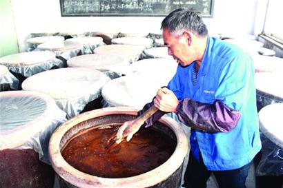 ????姜家人做的黃酒因醇厚和后勁大出名,而制作好酒最關鍵的則是上百年積累下來的經驗。按照姜家人的經驗,3斤黍米能產一斤酒,像煮稀飯一樣煮上一鍋黍米后熄火冷卻,這時老人會把手伸進鍋里感覺溫度。 “溫度高了酒酸,低了喝了容易上頭。 ”姜先生的孫子告訴記者,做酒的感覺是誰也學不去的,恰當的溫度放入酒曲決定了酒的口感,放到缸里發酵40天后,黃酒就做成了。