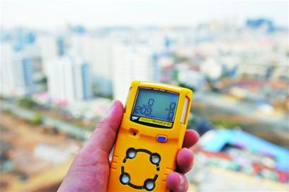 ????在福州北路上的鼎城花園小區,記者選了一座高層住宅樓進行檢測。在一樓的一家住戶里,卞家華啟動便攜式氣體檢測儀,不到一分鐘,儀器的屏幕上顯示出20.9的字樣。卞家華說:“這說明這個房間的含氧量為20.9%。通俗地說,這個房間的空氣里有2成是氧氣。 20.9是一個含氧量達標數值,也說明這里的氧氣量達到了標準值。 ”