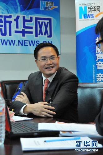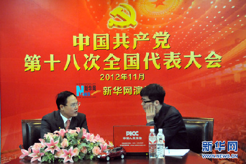 ????2012年11月13日,十八大代表、廣東省梅州市委書記朱澤君作客新華網設在京西賓館的十八大訪談間,接受新華網專訪。新華網 李非 攝