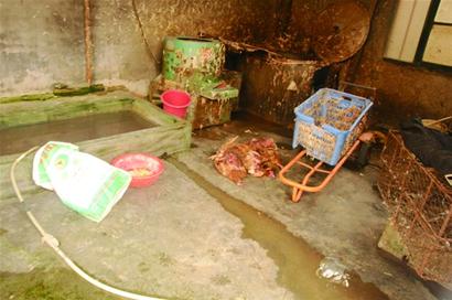 “這是別人家養的雞,被狗咬死了幾只,剛拿來加工。”記者在加工間里看到,地上丟著幾只血淋淋的小母雞。看到記者十分疑惑,朱老板立即解釋說。“狗咬死的雞沒有問題吧,萬一吃出問題怎么辦?”朱老板一聽立即說,這能有什么事,以前經常收到這樣的雞,一點事沒有,質量盡管放心,雞肉味道一樣的鮮嫩。