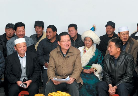 11月22日,省委書記、省人大常委會主任強衛深入貴德縣河陰鎮大史家村,面對面向基層黨員和農牧民群眾宣講黨的十八大精神。(記者劉端強 攝)