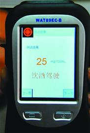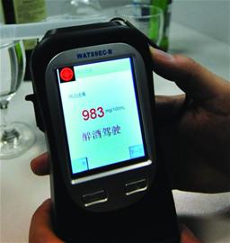 ????首日啤酒測試,4人各飲一杯啤酒,5分鐘后測試,結果顯示4人的酒精值分別為24(單位為mg/100ml,下同)、0、0、9,1人達到酒駕標準。7分鐘后,測試值分別為9、0、0、0。10分鐘后測試值均降為0。由于4人喝的量較小,隨著時間的推移,4人體內酒精含量測試值都沒有反彈。