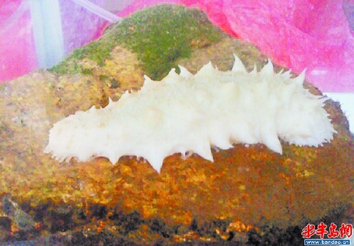 11月28日,膠南山前村的村民劉先生像往常一樣去自家海參池子里撈海參,竟撈回一只白色海參,上網一查這種白色海參很罕見。海參專家說,白色海參是海參體內基因突變所致。