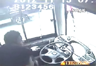 ??? 今天早上,一位公交司機在車上突發疾病,可是他在昏迷前用盡全身力氣,拉上了手剎,使公交車安全停靠。
