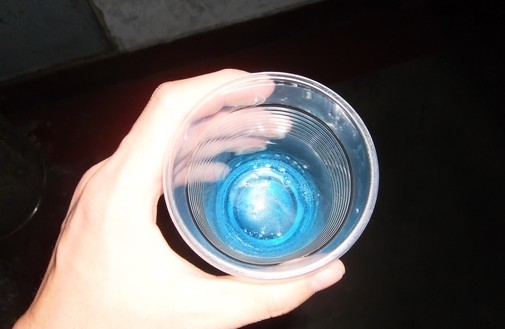 ????首先,記者將潔廁液20毫升左右倒入塑料杯中,隨后又將20毫升左右的消毒液也倒入了杯中,兩種藍色液體接觸后產生了白色泡沫,混合液體也變成了淡黃色,散發出刺鼻的綠色的氣體,由于事先未采取防護措施,吸入了該氣體的記者立刻感覺呼吸有些不暢、頭暈惡心,幾乎站立不住。坐在通風的位置休息幾分鐘之后,才感覺到舒服了一點。