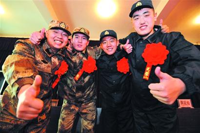 記者采訪了解到,20名新兵中,有大學學歷的不在少數(shù),甚至還有從美國休學專門回來參軍的留學生。21歲的張權在美國一所大學讀建筑設計,按照美國大學的學分制,他已經(jīng)修完學業(yè)四分之三的學分,只需再努力半年,就能修完學分繼續(xù)讀研。“我要到部隊去鍛煉鍛煉,成為一名真正的男子漢。”張權向家里提出要休學回國參軍的想法,立刻得到家人的認同。“孩子大了,有自己的見解,我們全家人完全同意。”張權的母親拍了一下兒子的肩膀,有些自豪地告訴記者,張權的爺爺就是當兵出身,張權從小就是聽“打鬼子”故事長大的,也許爺爺講的這些故事,讓孩子從小就有了參軍夢。