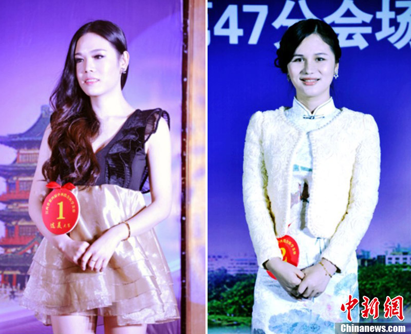 12月22日,一場名為江西省第四屆中西醫結合醫學美容選美大賽總決賽活動在南昌舉行,最終兩位“變性美女”分別摘獲了冠亞軍。圖為“變性美女”淇淇(左)獲得該選美大賽冠軍,“變性美女”申清清獲亞軍。