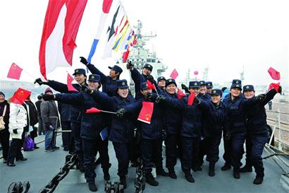 “青島艦熱烈歡迎新戰(zhàn)士”、“從軍報國、矢志海疆”……青島艦懸掛著鮮艷的橫幅,歡迎她們從馬背來到甲板,從邊關來到海邊,從地方來到軍營。“軍艦怎么發(fā)射導彈?”“艦員怎么生活?”“特戰(zhàn)隊員怎么選拔?”新戰(zhàn)士們一路參觀,一路詢問,艦員一一耐心作答。在軍艦威猛的艦炮下,新兵添譯告訴記者,以前,只是通過電視、網(wǎng)絡了解到祖國海軍的強大,今天真是大開眼界。“我一定要努力訓練,爭取早日成為一名合格的女艦員!”添譯說。