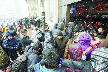 ????從昨天早晨開始,青島火車站無論是人工售票大廳還是自動售票廳,都擠滿了人,買票的長隊已經(jīng)排到了廣場上,公安民警和火車站工作人員不斷地在現(xiàn)場維持秩序。工作人員告訴記者,這場大雪的來臨,只有火車受到的影響相對較小,加上臨近元旦,很多在青島工作和上學的外地人準備回家,也加劇了火車站內(nèi)的擁擠程度。