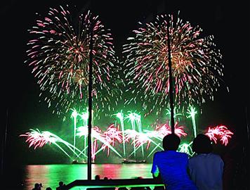 晚報訊 昨晚8時,上萬枚禮花在奧帆基地情人壩騰空升起,氣勢磅礴的焰火在空中展現出牡丹、手拉手、瀑布等造型,震撼的視覺效果烘托出隆重熱烈的喜慶氣氛,陪伴著市民度過2012年最后一天。