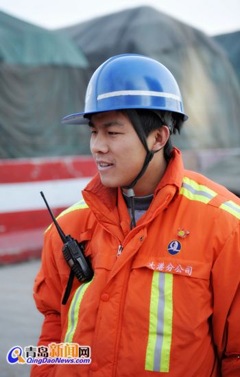 ????碼頭上的海風冷得刺骨,但是賣力工作的賈自剛和其他工人一起把厚厚的鴨絨服也脫掉了。“干起活來不方便也穿不住!”他的額頭上還滲出了細密的汗珠。????