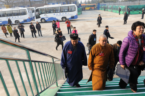 本次大會倡導節儉辦會,開幕式現場無橫幅、無標語,在低調而熱烈的氛圍里,500余名政協委員集中乘坐大巴車,闊步踏入會場。