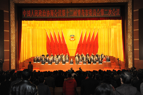 在節儉而熱烈的氣氛下,政協第十二屆青島市委員會第二次會議隆重開幕