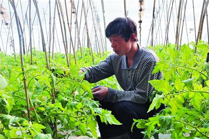 1月10日,記者在膠州市膠北街道辦事處北趙家村看到,幾十個蔬菜大棚全部種植著西紅柿。今年42歲的村民張含梅正在自家大棚內給西紅柿搭架綁蔓、整枝打杈,她種植的西紅柿秧已經長有一尺多高。據張含梅介紹,去年8月份和10月份,她分別種植了2畝大棚西紅柿,每天都起早貪黑地忙活,現在8月份種植的那批已經進入了收獲晚期,10月份種植的這批目前還很少有掛果的。