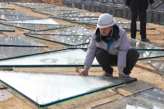 在鋼結(jié)構(gòu)完成封頂?shù)耐瑫r(shí),記者看到,植物館玻璃幕墻的拼嵌工作已經(jīng)在同步進(jìn)行當(dāng)中。在植物館西北側(cè)的穹窿位置,已經(jīng)拼嵌好部分玻璃幕墻,每塊玻璃都呈三角形,在陽光的照射下閃爍著琉璃般的光彩。可以想象,當(dāng)整個(gè)植物館15000多塊玻璃幕墻拼嵌完畢,呈現(xiàn)在世人眼前的植物館,將如一座水晶殿堂一般閃亮剔透。