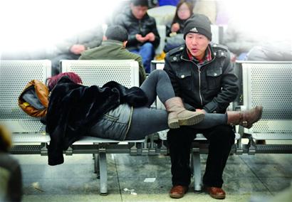 帶著孩子的父母更是對孩子關心備至,寧可自己受累,也不能讓孩子遭罪,即便累得直不起腰,也讓孩子坐在肩頭。結伴一起返鄉的人們相互照應,你累了就先睡會兒,我照看包裹;沒有地方依靠,可以直接將身子倒在同伴身上……無論是同鄉發小,還是情人伴侶,旅途中的友情讓他們溫暖相依。