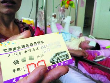 昨日下午,記者聯系上了瑞風車駕駛員老郭。 “我根本沒問他要錢! ”針對有人懷疑他的車是“黑車”,老郭介紹道,1月27日他和妻子在陪護孩子時發現鄰床的洋洋似乎有些脫水,隨后建議洋洋坐他的車去位于遼陽西路的婦女兒童醫院治療。 “我們都是沾親帶故的老鄉,我哪能要他錢? ”老郭介紹道,按照規矩,老張只要“隨意給點”、“意思一下”就行。對于張麗霞提到的名片,老郭說他之前曾靠開車送人掙過錢,但這并不是他的主業,他也沒有在運管部門登記過。