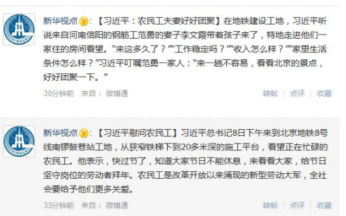 中新網(wǎng)電 據(jù)新華社“新華視點(diǎn)”的官方微博報(bào)道,中共中央總書(shū)記習(xí)近平8日下午來(lái)到北京地鐵8號(hào)線南鑼鼓巷站工地,從狹窄鐵梯下到20多米深的施工平臺(tái),看望正在忙碌的農(nóng)民工。