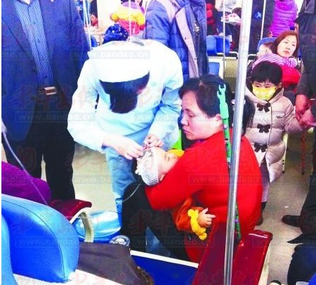 15日,市婦兒醫院感冒患兒扎堆。