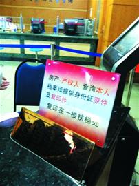 ????來到4樓房地產權屬登記查詢大廳,記者還是以二手房購房者身份想查詢賣主房產信息,一名女工作人員稱這是嚴格禁止的,指著旁邊的一塊指示牌說:“只有房主本人持有效證件才能查詢自己房產數量”。那知道賣主房屋地址是否可查詢房屋產權信息呢?這名女工作人員稱需要交5元查詢費。