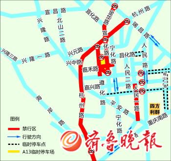 ????今年糖球會(huì)以海云廣場(chǎng)、糖球廣場(chǎng)、嘉禾路、興中路為中心,輻射周邊道路和區(qū)域。20日,記者從四方交警大隊(duì)了解到,為了維護(hù)交通秩序,在糖球會(huì)期間,交警部門將對(duì)嘉禾路及其周邊部分道路實(shí)行交通管制。與往年相比,今年的調(diào)流方案沒(méi)有大的變化,具體措施如下:1、杭州路由南向北(杭州路立交橋至宣化路段),以及杭州路(瑞昌路至嘉定路段)北向南只允許公交汽(電)車、班車、出租車及執(zhí)行任務(wù)的特種車輛行駛。繞行辦法:北向南車輛經(jīng)瑞昌路、廣昌路、宜昌路、興隆路、興隆一路、海岸路駛?cè)牒贾萋罚挥赡舷虮蓖窘?jīng)杭州路的車輛可繞行溫州路—寧化路—杭州路。2、遵化路(杭州路至嘉定路段)、興中路(杭州路至興隆路段)、興隆路(杭州路至興隆一路段)、嘉定路(人民路至杭州路段)、嘉興路(人民路至杭州路段)、嘉善路(人民路至杭州路段)、平安路(人民路至杭州路段)等7條道路封閉,禁止機(jī)動(dòng)車通行,另外禁止車輛進(jìn)入嘉禾路轉(zhuǎn)盤方向:杭州路(不含)以東、嘉定路(不含)以北、宣化路以南。上述限行措施實(shí)施時(shí)間為2月25日至3月3日每天7時(shí)至18時(shí)30分。