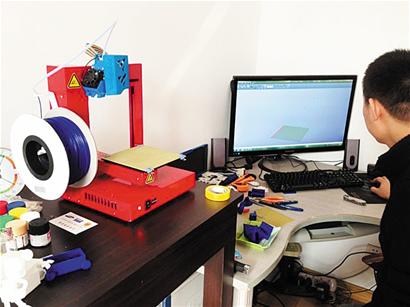形狀像加工木板的切割機,只是沒有切割齒輪,長和寬約是半米,各類打印材料纏繞在器械兩旁……昨日上午,記者在青島3D打印機總代理的海洋電子工程有限公司內,見到了“傳說中”的3D打印機,與其說是打印機,看起來更像是一臺模具加工器。 “傳統的打印機只需要紙和墨水就行了,但是3D的用的都是‘真槍實彈’啊! ”該公司經理李強指著機器告訴記者,該打印機則是需要塑料、石膏粉、金屬,甚至砂石等作為材料。