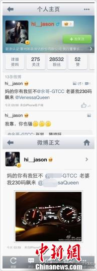 ????近日,浙江寧波網友截圖爆料,認證信息為“寧波鄞州凱新視訊股份有限公司執行董事長”的@hi__jason發微博稱“老婆我230碼飆來”,配圖顯示時速219碼。中新網記者今天從寧波市鄞州區交警部門獲悉,交警部門已介入調查此事。