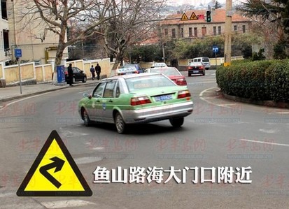 ????在魚山路中國海洋大學(xué)門口附近路段,連續(xù)4個(gè)下坡急轉(zhuǎn)彎的路口暗藏危險(xiǎn)。為了保障從學(xué)校里進(jìn)出車輛和行人的安全,海大門口的位置設(shè)置了一處紅綠燈,當(dāng)紅燈禁行時(shí),剛從前一個(gè)轉(zhuǎn)彎路口行駛過來的車輛不得不緊急剎車。如果車速過快,很容易造成追尾事故。